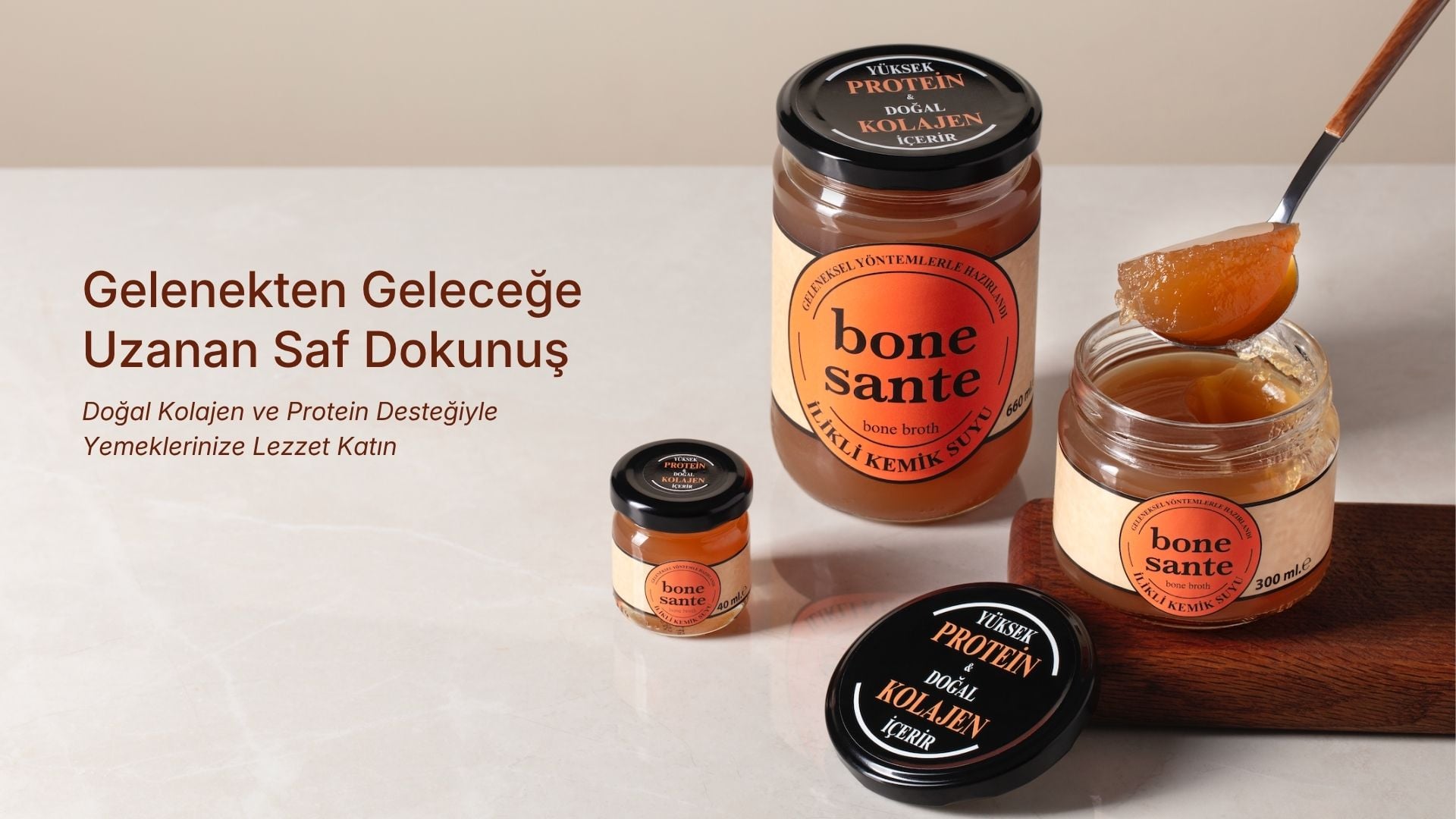 Sağlıklı yaşamın ve gurme lezzetlerin temel taşı olan Bone Sante İlikli Kemik Suyu, en saf haliyle sofralarınıza geliyor.